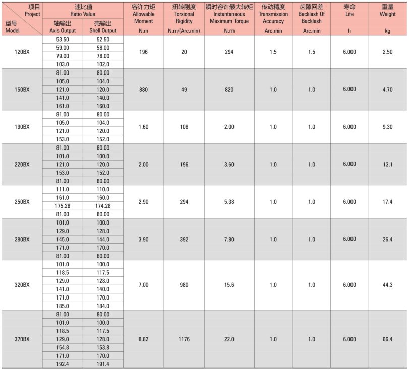 減速機型號:120BX 150BX 190BX 220BX 250BX 280BX 320BX 370BX